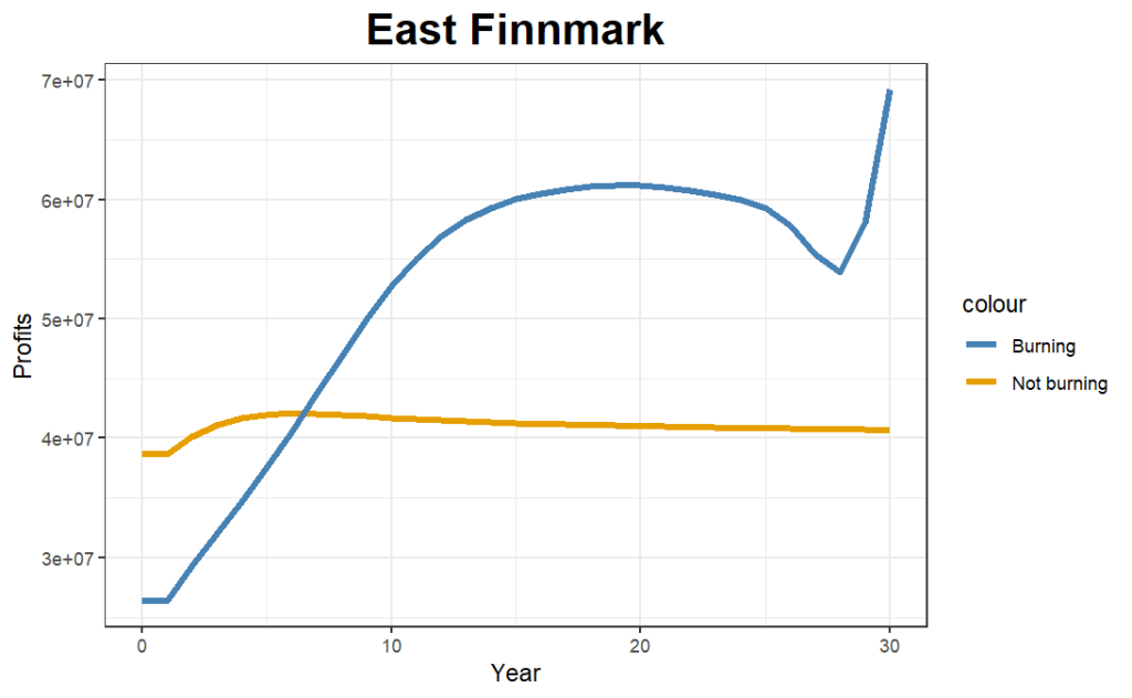 Disse bioøkonomiske modellene indikerer at det kan være en økonomisk fordel for reindriften å gjøre tiltak mot gjengroing.